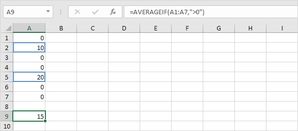 1. 예를 들어, 아래의 AVERAGEIF 함수 (인수 2개)는 A1:A7 범위에서 0보다 큰 모든 값의 평균을 계산합니다.