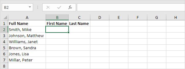우리가 다루고 있는 문제는 우리가 문자열을 분리할 위치를 Excel에 알려야 한다는 것입니다. Smith의 경우 쉼표 Mike는 위치 6에 있고 Williams의 경우 Janet 쉼표는 위치 9에 있습니다.