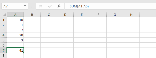 셀 범위를 합산하려면 SUM 함수를 사용하십시오.