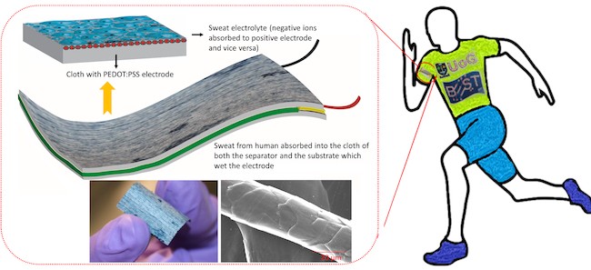 글래스고 대학의 엔지니어들은 에너지를 저장하는 새로운 유형의 유연한 슈퍼커패시터 를 개발하여 기존 배터리에서 발견되는 전해질을 땀으로 대체했습니다.