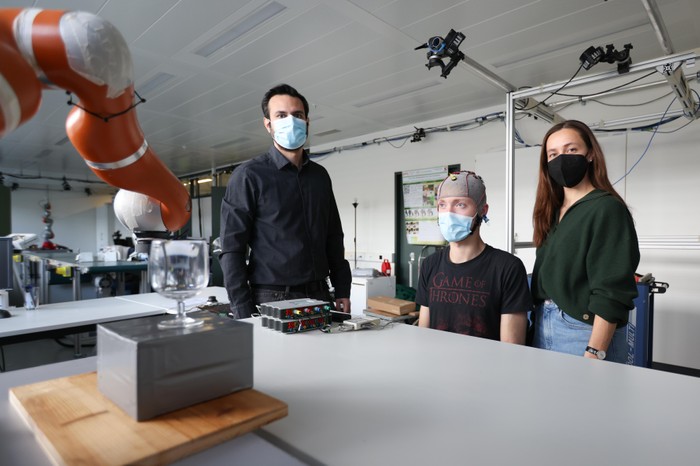 테스트에서 로봇 팔은 장애물 주위를 이동하는 것과 같은 간단한 작업을 수행합니다. 그런 다음 알고리즘은 EEG 캡을 사용하여 뇌의 신호를 해석하고, 예를 들어 장애물에 너무 가까이 이동하거나 너무 빨리 이동하는 등 뇌가 잘못된 것으로 간주하는 동작을 팔이 한 시점을 자동으로 결정합니다.