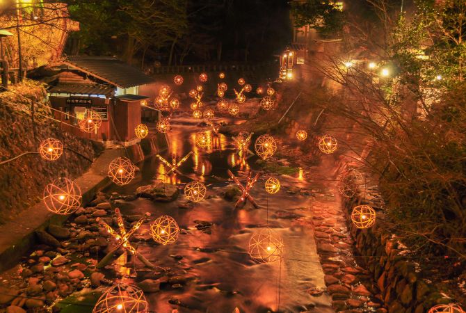 안개 낀 언덕에 에워싸인 계곡 속에 아늑하게 자리 잡은 이 전원풍의 소도시는 딱히 온천욕 생각이 없더라도 그저 산책을 즐기기에도 좋은 멋진 곳입니다. 대부분의 다른 일본 리조트 타운과는 달리 구로카와 온천은 단순하고 전통을 고수하는 분위기가 잘 보전되어 있어 대도시의 화려하고 붐비는 길거리와는 완전히 다른 세상에 온 듯한 기분이 듭니다.
