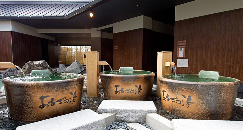 그리고 뭐니뭐니해도 중요한 것은 역시 온천의 퀄리티! 일본정서가 가득한 천연노천탕을 비롯하여, 몸속까지 따뜻해지는 탄산욕탕, 열탕, 암반욕(별도요금요)까지 질높은 온천도 갖추어져 있습니다. 관내시설을 자랑하는 ‘유카이노유’에서 놀이도 즐기고 온천도 즐겨보세요. 운동으로 흠뻑 땀을 흘리고서 온천에서 땀을 씻는 상쾌함! 느껴보지 않으실래요?