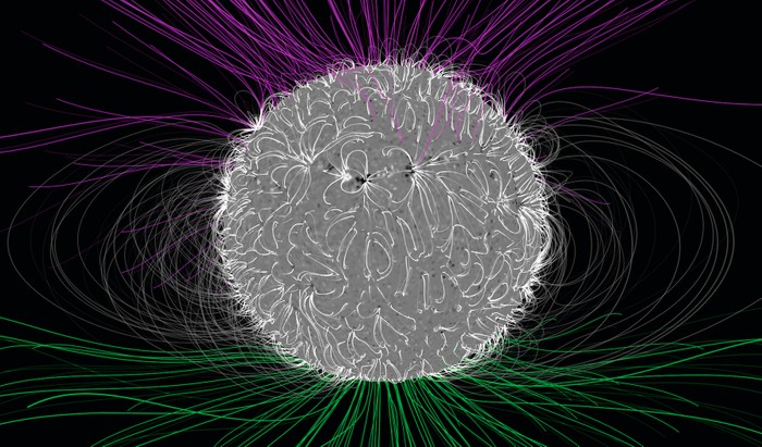 가장 최근의 측정에 따르면 태양 표면 바로 위의 일반적인 자기장은 2가우스와 6가우스 사이에 있습니다. 비교하자면, 지표면에서 지구의 자기장은 0.25가우스에서 0.65가우스 사이이며, 이는 태양 자기장의 약 10%입니다.