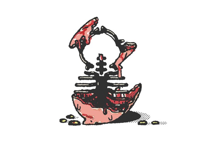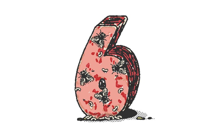 몸에서 방출되는 화학 물질은 파리를 유인하여 오리피스 안팎에 알을 낳습니다. 곧 구더기가 부화하여 몸의 살과 기관을 먹기 시작합니다.