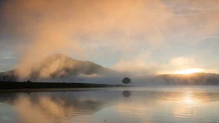 계곡안개는 일반적으로 계곡의 가장 낮은 부분에 차고 빽빽한 공기가 응결되어 안개를 형성하면서 형성됩니다. 그것은 언덕이나 산과 같은 지역 지형에 의해 제한되며 며칠 동안 지속될 수 있습니다.