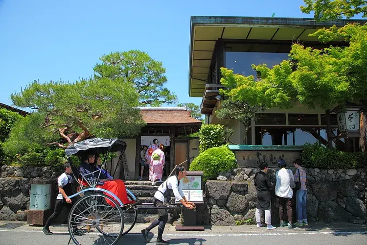 교토 아라시야마의 토게츠쿄(渡月橋 ; 도게츠교, 도게츠다리) 건너편 바로 강변에 있는 소바집으로 위치가 아주 좋습니다. 기모노를 입은 관광객, 인력거를 타고 다니는 관광객들로 언제나 붐비는 곳입니다.