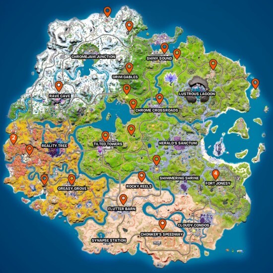 아래 지도에는 현재 시즌 현재 모든 포트나이트 NPC가 있습니다. 일부 캐릭터는 동일한 위치(즉, The Joneses 및 Kit 및 Meowsicles)에 나타나지만 모든 경기에서 하나만 나타납니다. 찾을 수 없으면 다음 게임이 나타날 때까지 기다리십시오.