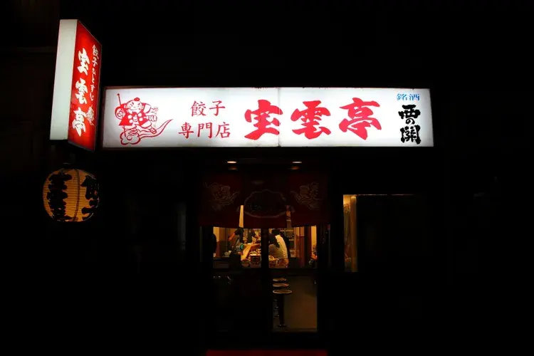 후쿠오카의 최대 환락가인 나카스에 있는 호운테이는 후쿠오카의 명물 음식인 '히토쿠치 교자(ひとくち餃子)'의 원조집으로 불립니다.