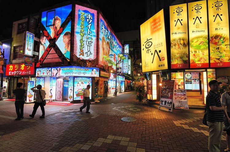 60~70년대에는 술을 마시고 심야 쇼를 하는 대형 극장을 학생들이 자주 찾았습니다. 게임 센터와 디스코장도 생겨나면서 밤을 즐기기 좋은 장소로 유명해졌습니다. 80년대 후반에는 야간 유흥을 제한하는 일부 법이 개정되면서 건전한 상점들이 문을 닫고, 그 대신 호스트, 호스티스 클럽과 같은 성인 대상 업체가 그 자리에 생겨나서, 성인 유흥업이 더 크게 발달하게 되었습니다.