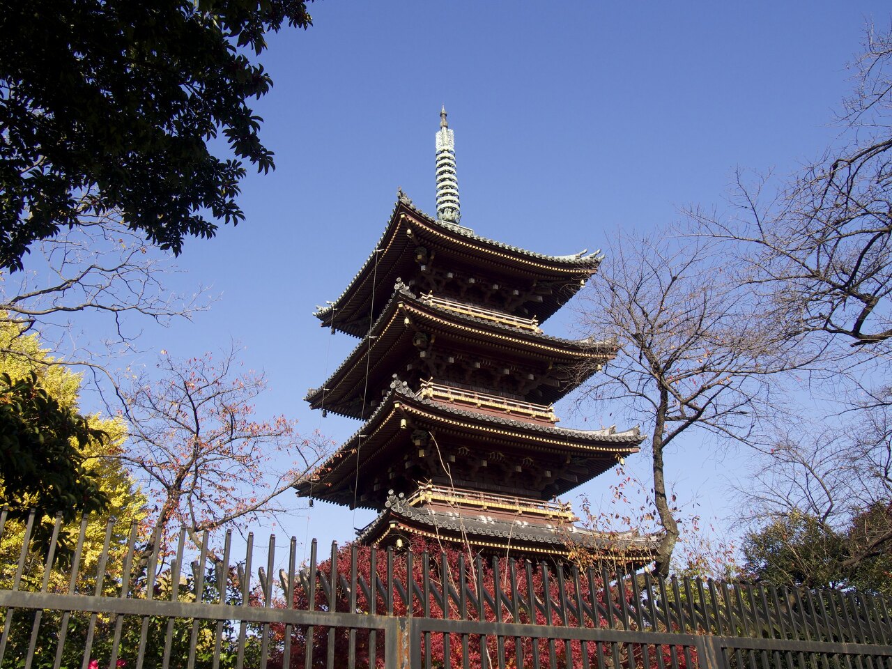 간에이지는 1625년에 설립된 사찰로 에도 시대 도쿠가와가가 머물렀던 곳으로 잘 알려져 있습니다. 이전에는 우에노 공원 전체를 차지하는 넓은 사찰이었으며, 현재 5층 탑과 기조미즈칸논도는 국가적으로 중요한 문화적 자산으로 지정되었습니다. 2차 대전의 포화 속에서도 살아남은 귀중한 문화 유산입니다.