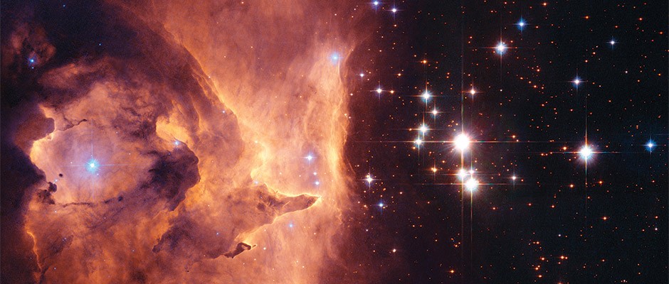 여기에서 허블은 먼지를 뚫고 아기 별이 태어나는 창을 만들 수 있었습니다. 성단의 가장 밝은 별인 피스미스 24-1의 질량은 태양의 약 300배로 은하계에서 가장 무거운 것으로 여겨졌습니다. 그러나 허블은 그것을 훨씬 더 겸손한 100 태양질량에 두고 있습니다.