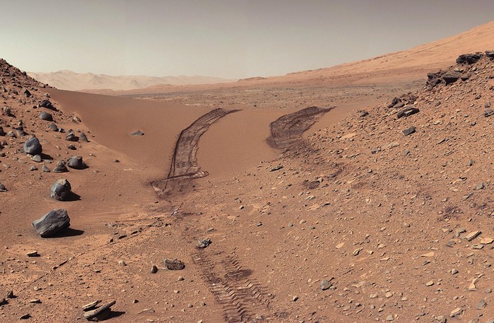 이 이미지가 우리의 상상력을 사로잡은 이유는 마치 창을 통해 화성 표면을 보는 것처럼 느껴지기 때문입니다. 사진을 찍은 카메라는 Curiosity의 눈높이에 위치하므로 이미지는 실제로 화성에 서서 장면을 보는 것과 같은 느낌을 전달합니다.