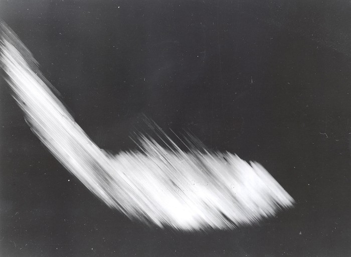 NASA의 익스플로러 6호 우주선이 찍은 태평양의 햇볕이 잘 드는 부분과 그 구름 덮개의 조잡한 사진입니다.
