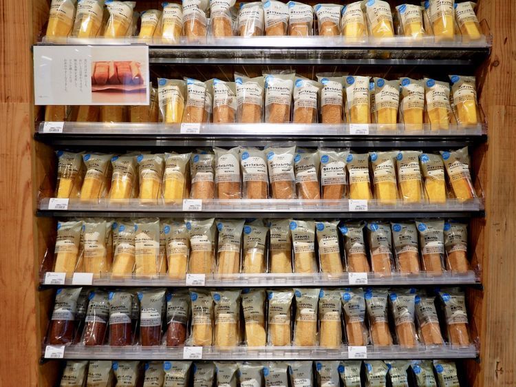 다음은 과자 판매장. ①불규칙 홍차 바움쿠헨(150엔), ②불규칙 바나나 바움쿠헨(150엔), ③화이트 초코 딸기(290엔). 이 세 가지가 가장 인기 있는 상품이라고 합니다. '불규칙'이라는 이름이 붙은 이유는 식품의 형태 등 겉모습이 꼭 가지런하지 않더라도 맛과 식감에 영향이 없다면 상품성이 있다는 판단 하에 판매하고 있기 때문입니다. 식재료를 소중히 여기는 무인양품의 이러한 자세 또한 많은 사람의 마음을 사로잡고 있는 요소입니다.