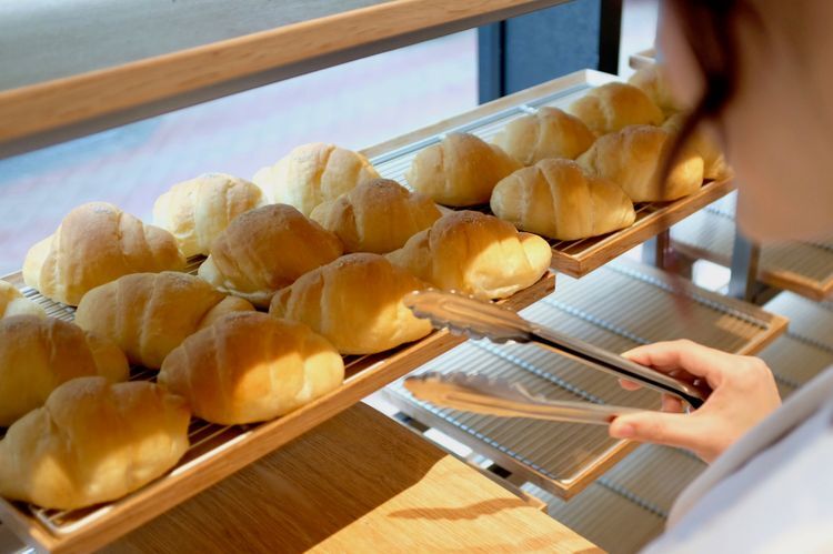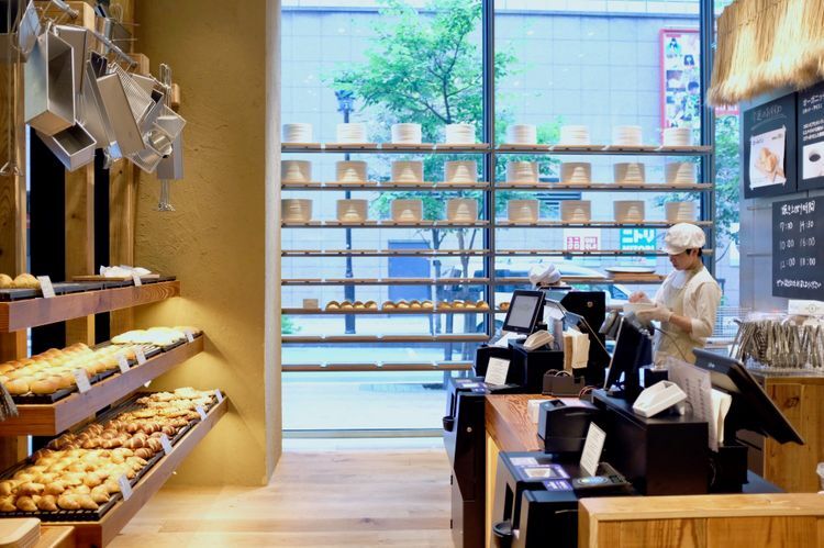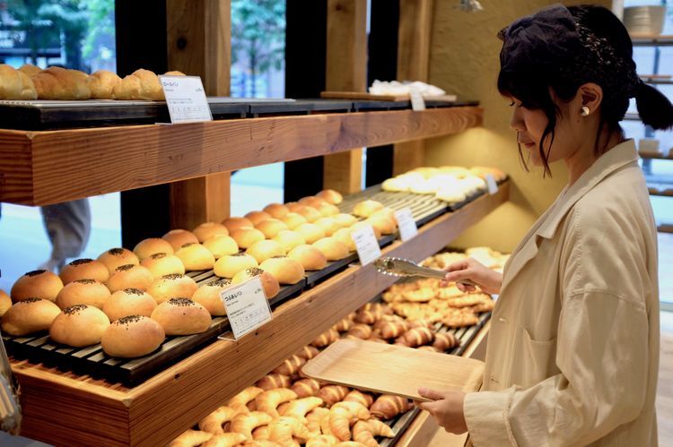 무인양품 긴자점은 같은 점포 내에서도 일부 개점 시간에 차이가 있습니다. 가장 일찍 문을 여는 곳이 1층으로, 오픈 시간인 매일 아침 7시 30분에는 다양한 종류의 갓 구운 노릇노릇한 빵이 늘어섭니다. 그중에서도 '롤빵(90엔)'은 일본 국산 밀가루를 사용하여 폭신폭신 부드럽고 가격도 저렴하며 어떤 아침 식사에도 잘 어울리기 때문에 특히 큰 인기를 끌고 있습니다. 커피와 세트로 주문하여 하루의 시작을 이곳 베이커리에서 시작하는 사람도 많습니다.
