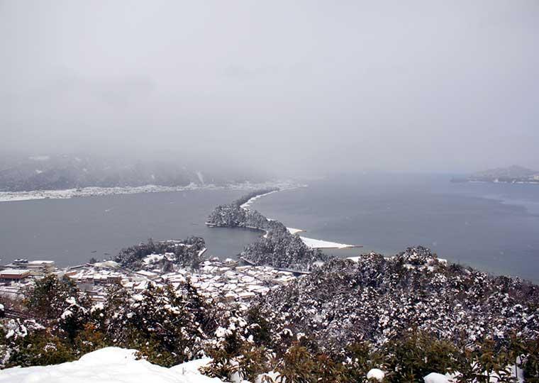 일본 삼경의 하나, 「아마노하시다테(아마노 하시다테)」는 눈 화장한 모습도 절경입니다. 폭 약 20~170m, 전체 길이 약 3.6km에 걸쳐, 약 5,000그루의 소나무가 자라는 지형은, 수천년의 세월을 걸쳐 만들어진 것.