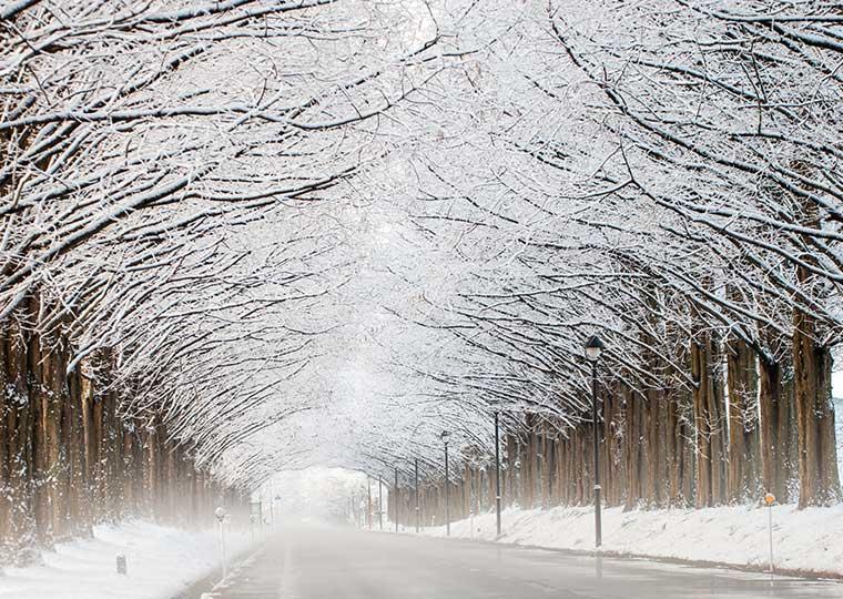 약 500그루의 메타세쿼이아가 약 2.4km에 걸쳐 계속되는 가로수길. 「신·일본 가로수 100경」에 선정되고 있어, 한국 드라마 「겨울의 소나타」의 명장면의 로케지와 닮았기 때문에 인기에 불이 붙었습니다.