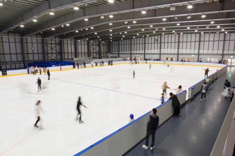 피겨 스케이트, 스피드 스케이트, 아이스 하키에도 이용할 수 있는 1,593평방미터의 본격적인 링크로 스케이트를 즐길 수 있습니다.