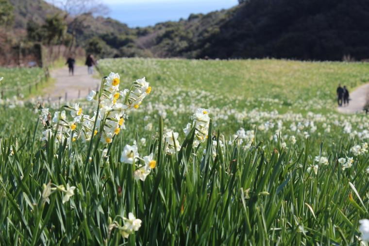 아와지시마 남부는 일본 3대 수선군 원단의 하나로 꼽히고, 「다치카와 수선향」에서는 겨울부터 봄에 걸쳐 약 400만 그루의 수선화의 꽃을 즐길 수 있습니다.