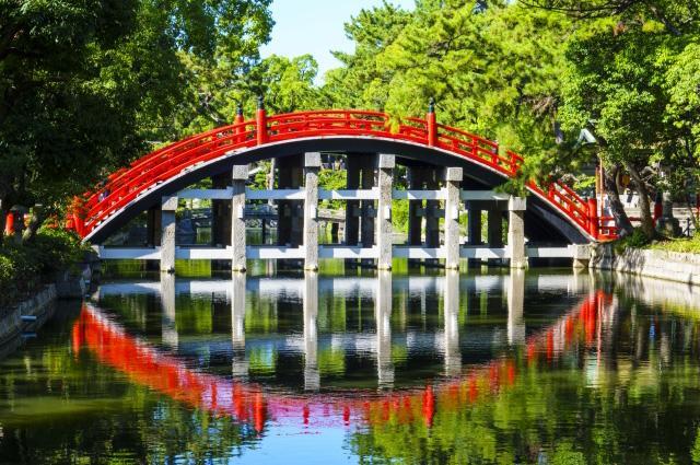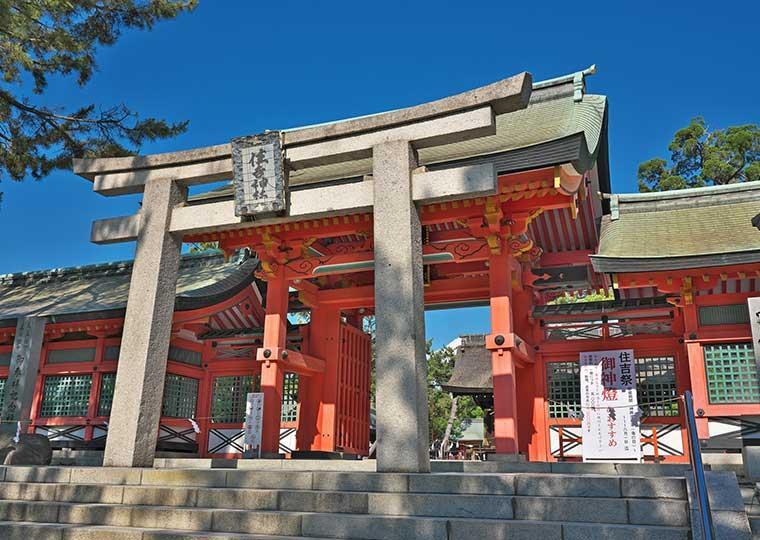 전국에 약 2,300사가 있는 스미요시 신사의 총 본사, 오사카 「스미요시 대사」. 약 1800년의 역사가 있으며, 첫 참배에는 예년 200만명 이상이 방문합니다. 제신이 해중보다 출현한 것으로부터, 해상 수호·교통 안전의 이익이 있다고 말해지고 있습니다.