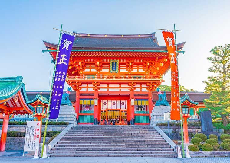 볼거리가 많은 교토에서도 여행자로부터 굴지의 인기를 자랑하는 「후시미이나리타이샤」. 주홍색 도리가 늘어선 ‘센본 도리이’가 유명하며 이나리신을 모시는 전국 약 3만 개에 이르는 이나리 신사의 총본궁입니다. 오곡 풍양, 장사 번성 등의 이익이 있다고 여겨져, 예년, 초예에 약 320만명의 사람으로 붐빕니다