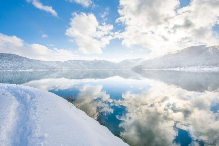 사계절 내내 다양한 풍경을 즐길 수 있지만, 특히 눈 화장한 산들과 하늘, 구름 등의 리플렉션은 절경입니다.