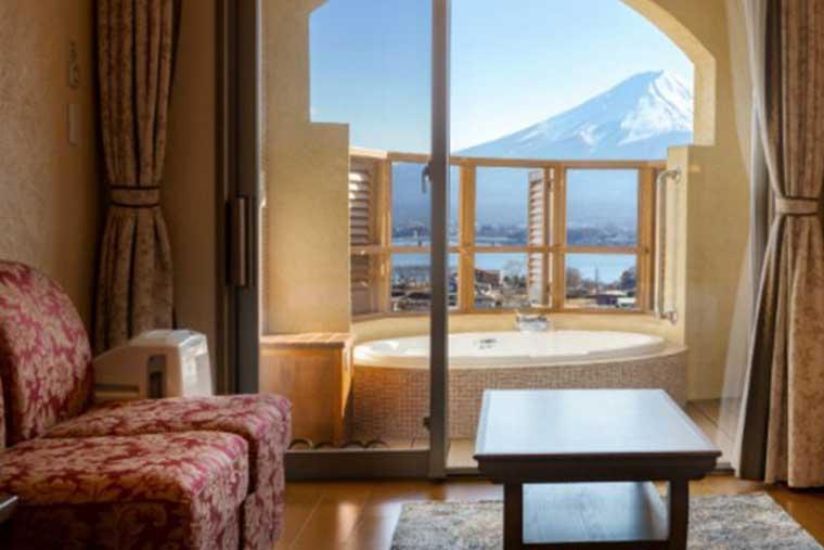 프로방스의 바람을 느끼는 온천 리조트. 베란다의 뷰 버스에서 후지산과 가와구치코를 한눈에