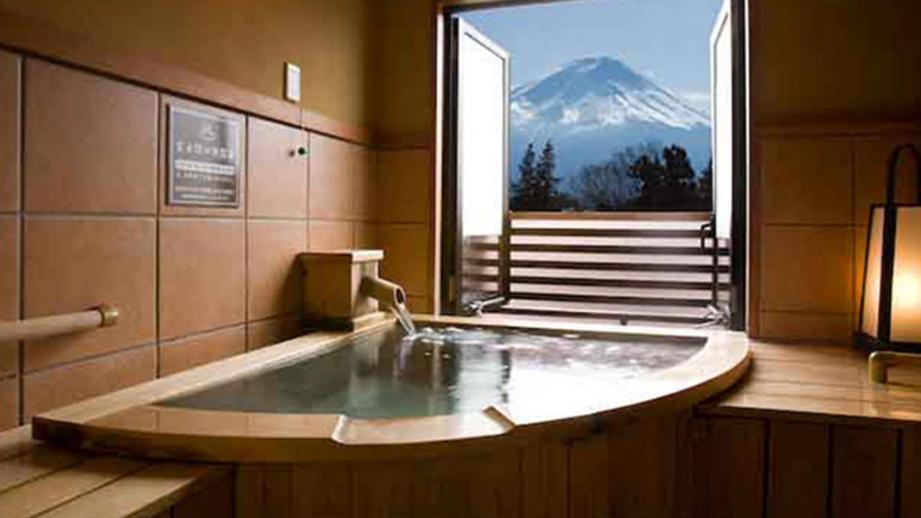 객실 노천의 정면에 웅대한 후지산이 선보입니다. 전망 대욕장이나 정원 노천에서도 온천 삼매