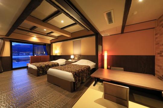 노천탕이있는 프리미엄 일본식 모던 룸 "촛리 (산리)"는 메이크업 아티스트 프로듀스의 라이트를 얽힌 객실 세면대와 후지 요시다시의 전통 유산 카이 실크 장인이 만드는 잠옷과 작무의 , 침대 덮개를 갖춘 최고 공간. 야마나시산의 와인이나 스파클링 와인, 파티시에가 만드는 소과자를 즐길 수 있는 전용 라운지도 이용할 수 있어, 특별한 날의 숙박에 딱 맞습니다.