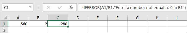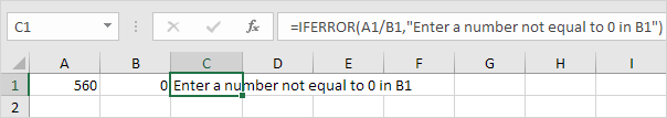 2. 수식이 오류로 평가되면 아래의 IFERROR 함수가 친숙한 메시지를 반환합니다.