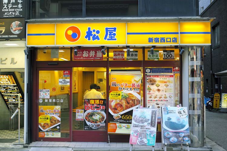 gydon-ya 외에도 Hanamaru Udon 및 Marugame Seimen과 같은 상징적인 우동 레스토랑, Tendon Tenya와 같은 텐동(튀김 덮밥) 레스토랑, Hidakaya, Korakuen, Ippudo 및 Ichiran과 같은 라멘 전문점도 있습니다. 또한 오토야, 야요이켄과 같이 밥, 된장, 생선, 고기, 야채 볶음 등 반찬이 충실한 일식 정식을 즐길 수 있는 곳도 있습니다. 대부분의 요리가 500엔에서 1,000엔 사이인 곳에서 선택할 수 있는 다양한 일본 패스트푸드 체인이 있습니다.