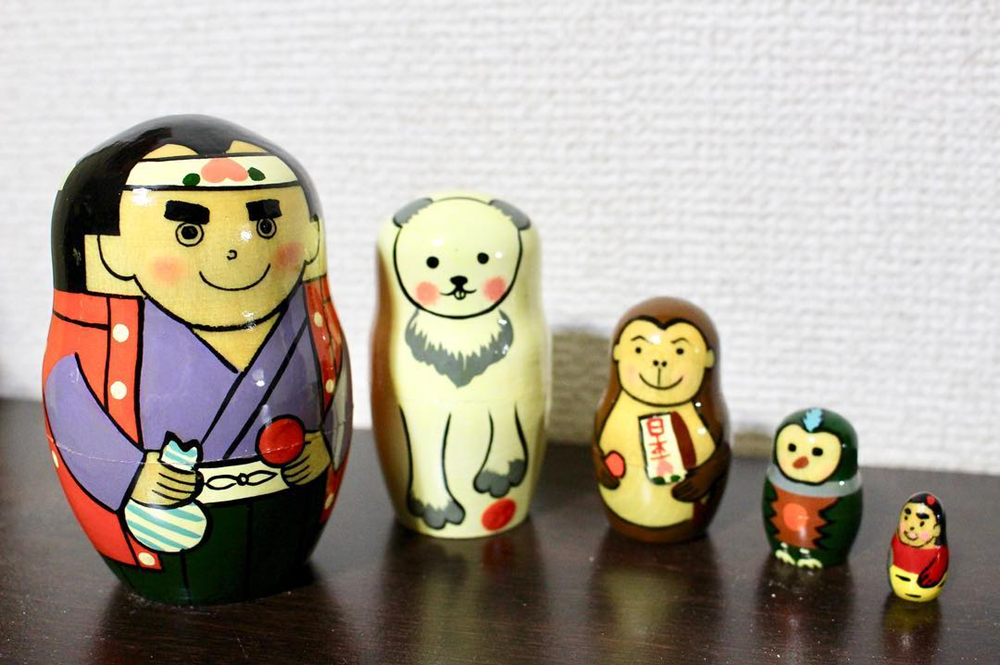 다음은 마트료시카 모모타로입니다. 마트료시카는 러시아 전통 기념품이지만, 모모타로 동화의 고장 오카야마에서는 모모타로를 주제로 한 마트료시카가 인기 기념품입니다. Momotaro의 리테이너는 내부에 자리 잡고 있으므로 Momotaro matryoshka를 열면 모두 볼 수 있습니다. 또 다른 귀여운 점은 가신들이 모두 자신의 키비 경단을 들고 있다는 것입니다.