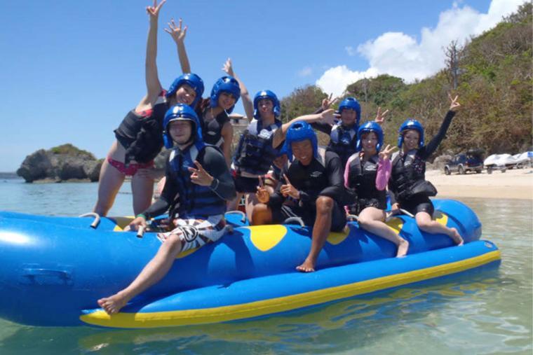 공기가 들어간 튜브에 몇 명이 타고, 보트 등으로 당겨 주면서 흔들리지 않도록 즐기는 바나나 보트와 밴드 왜건, 빅 마블. 그들에 제트 스키도 더해 4 종류를 한꺼번에 만끽할 수있는 것이 오키나와 남부 바나나 보트 + 제트 스키 + 밴드 왜건 + 빅 마블 체험 . 마지막으로 한 번 더 체험하고 싶은 차량을 요청할 수도 있습니다.