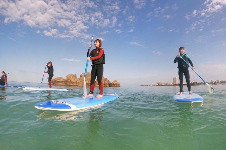 본섬 중부의 서해안·차탄에서는 일본 스탠드업 패들보드 협회(SUPA) 공인 강사가 주최하는 오키나와 차탄 SUP 체험은 물론 스노클링도 할 수 있으므로 바다와 수중을 모두 즐길 수 있습니다.