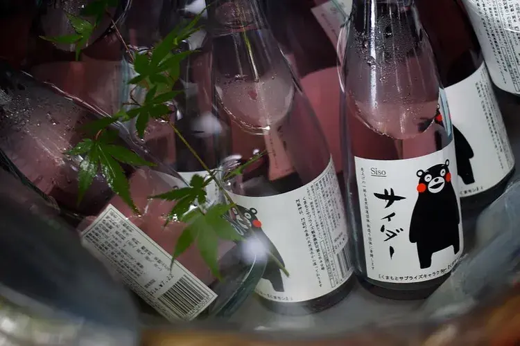 사이다는 아소의 맛있는 샘물을 사용하므로 구마모토의 신선한 자연을 만끽할 수 있는 좋은 방법입니다. 아소와 오카모토에 있는 대부분의 주류 판매점에서 이 지역 사이다를 구입할 수 있습니다.