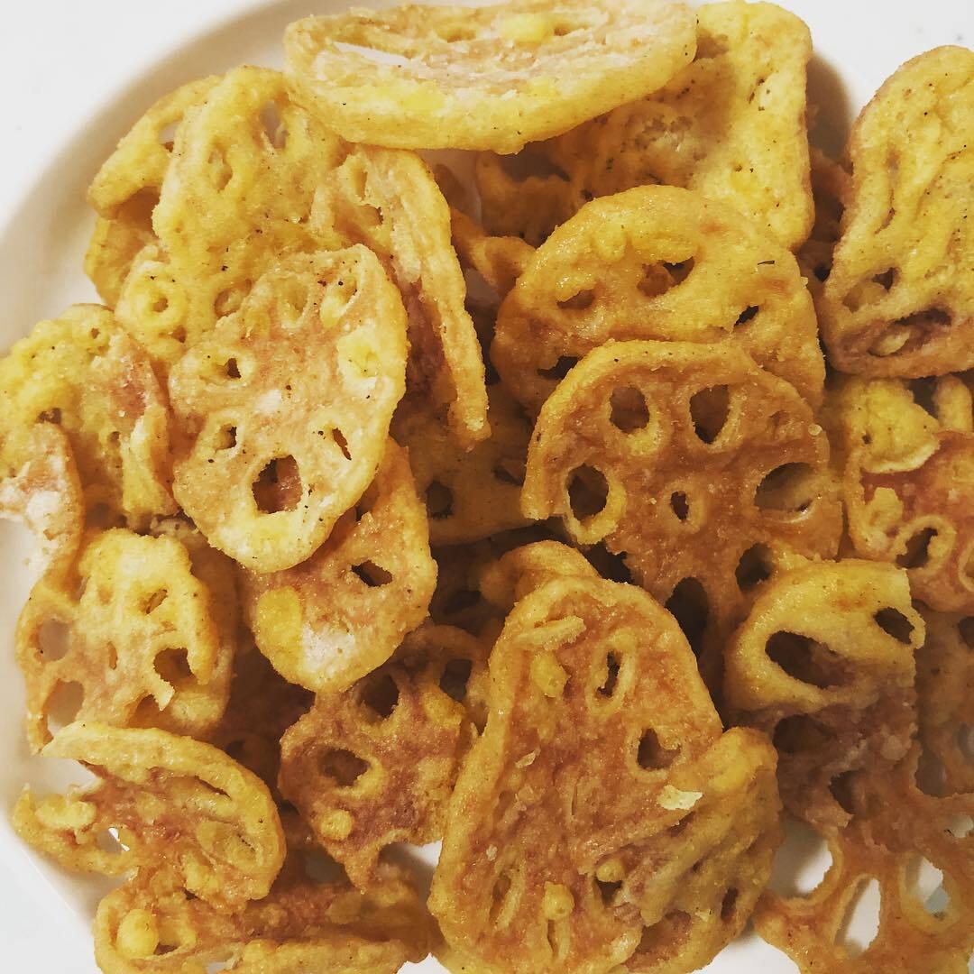 구마모토의 또 다른 명물인 가라시 렌콘칩(1상자 648엔). 이 매콤한 연근 칩은 중독성 있는 맛과 아삭아삭한 맛이 있어 훌륭한 간식이 됩니다. 그들은 너무 맛있어서 당신이 그들을 먹는 것을 멈출 수 없을 것입니다! 맥주와 함께 즐기기 좋은 안주이기도 합니다.