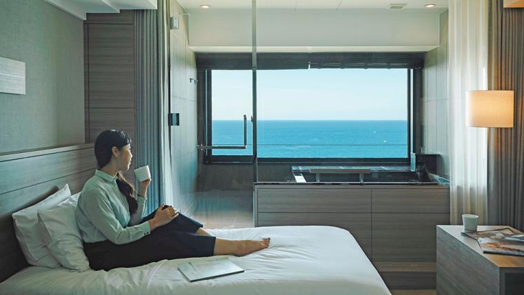 객실은 전실 오션 뷰로, 다다미가 깔린 일본식 방, 아기 동반 친화적인 「웰컴 베이비 룸」, 팬더를 테마로 한 「니코니코 팬더 룸」, 스위트 룸까지 다채롭게 갖추고 있습니다.