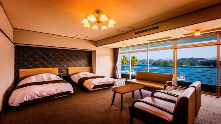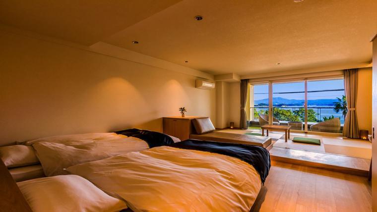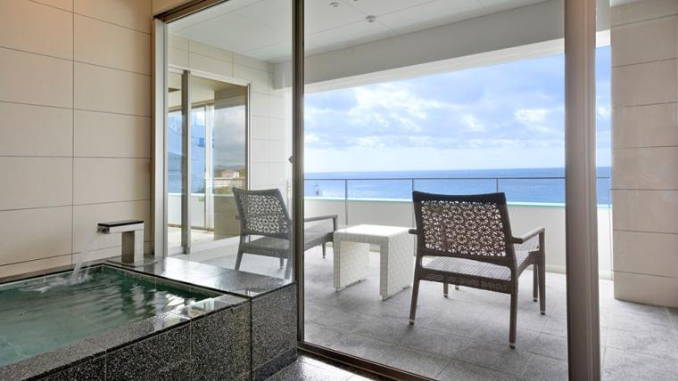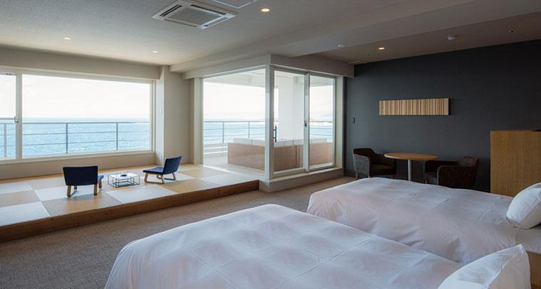 182실 모두가 40평미 이상이라는 넓은 객실도 특징. 오션 뷰의 객실도 많아, 바다를 보면서 온천에 넣는 뷰 버스 첨부의 방, 다다미의 온기를 느끼는 일본식 방, 다다미의 편안함과 침대의 잠 기분을 양립한 일본식 방 등을 라인업.