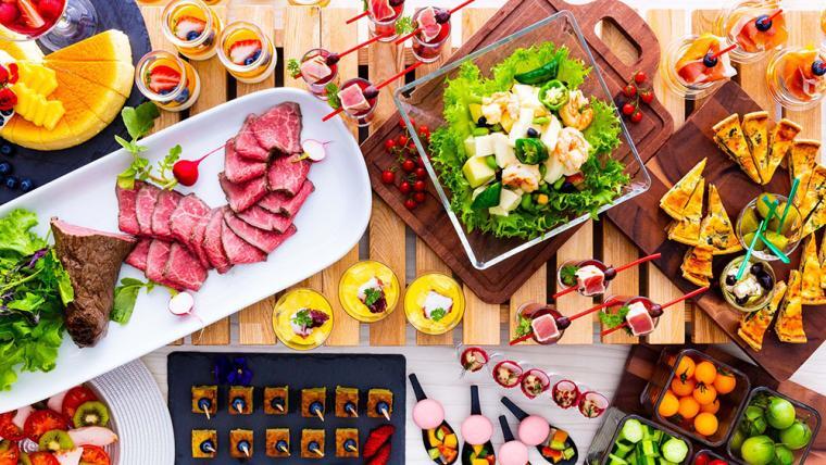 저녁 식사는, 현지 기슈의 재료를 듬뿍 사용한 호화로운 뷔페. 라이브 키친이 충실하고 있는 것도 매력의 하나로, 눈앞에서 구워 주는 흑모 와규의 스테이크나, 갓 잡은 초밥, 갓 튀긴 튀김 등을 맛볼 수 있습니다. 디저트 타임에 행해지는 프랑베의 실연도 놓칠 수 없습니다.