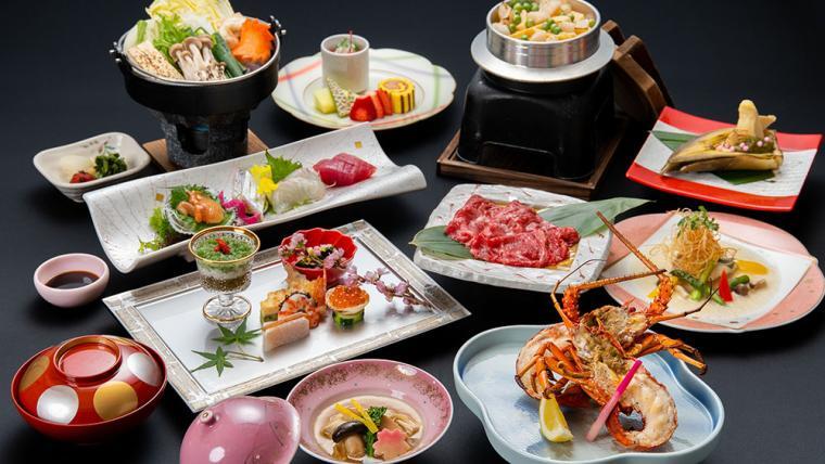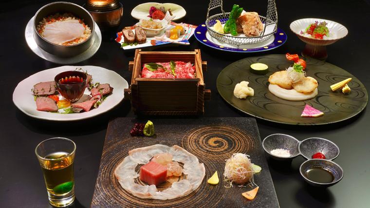 저녁 식사의 메인은, 와카야마의 브랜드 와규·구마노규나 퀘, 이세 새우 등이. 저녁 식사는 레스토랑 외에, 방식이나 개인실 식사처에서 식사할 수 있으므로, 개인적인 공간에서 호화로운 시간을 보낼 수 있습니다.