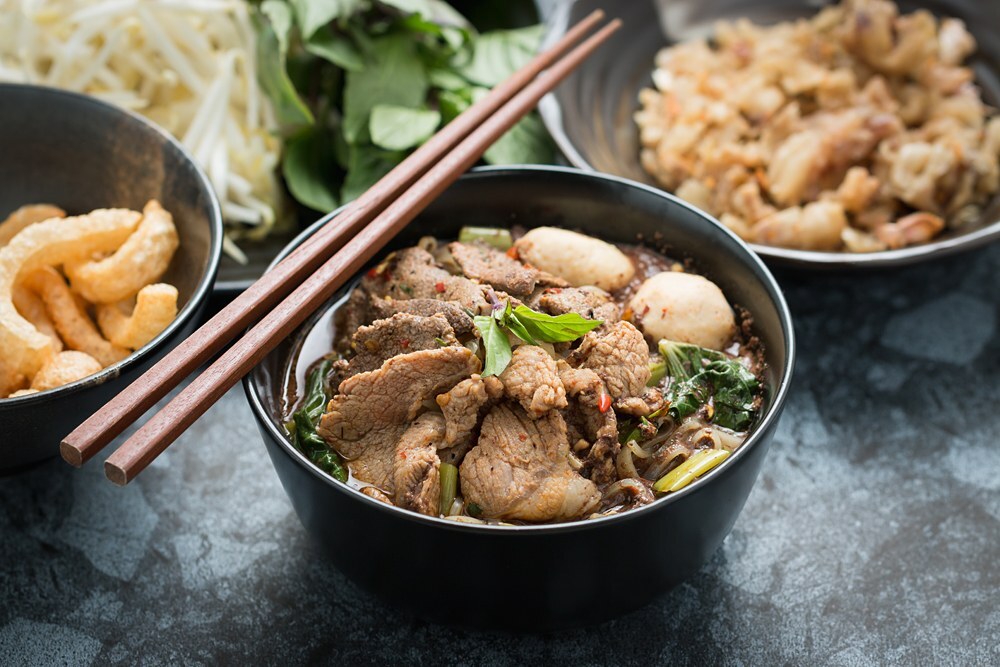 Boat Noodles 또는 Kway Teow Rua는 본질적으로 방콕 요리이며, 국내 레스토랑에서는 이와 유사한 것을 찾을 수 없습니다. 천천히 익힌 국물, 고기, 말린 허브, 국수가 담긴 이 작은 그릇은 수십 년 전 도시의 운하와 강을 따라 음식을 제공하던 배에서 이름을 따왔습니다. 그들은 일반적으로 돼지 고기 또는 쇠고기로 만들어지며 국수에 풍미를 불어 넣는 많은 국물과 함께 제공됩니다.