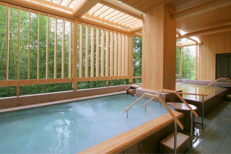 대욕장에는 전망 노천탕이 있어, 아리마의 특징인 다갈색의 금천과 무색 투명의 은천에 잠기면서, 사계절의 산의 풍경을 즐길 수 있습니다.