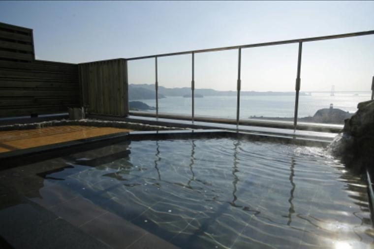아카유 온천의 「긴파소」는 절경의 인피니티 목욕탕이 인기. 세토 내해의 대 파노라마를 바라보는 노천탕에 잠기면 바다와 하늘과 일체가 된 감각을 맛볼 수 있습니다. 또, 아카호 온천의 온수는 피부 미용·보습 효과가 뛰어나, 입욕 후는 피부가 짙게.