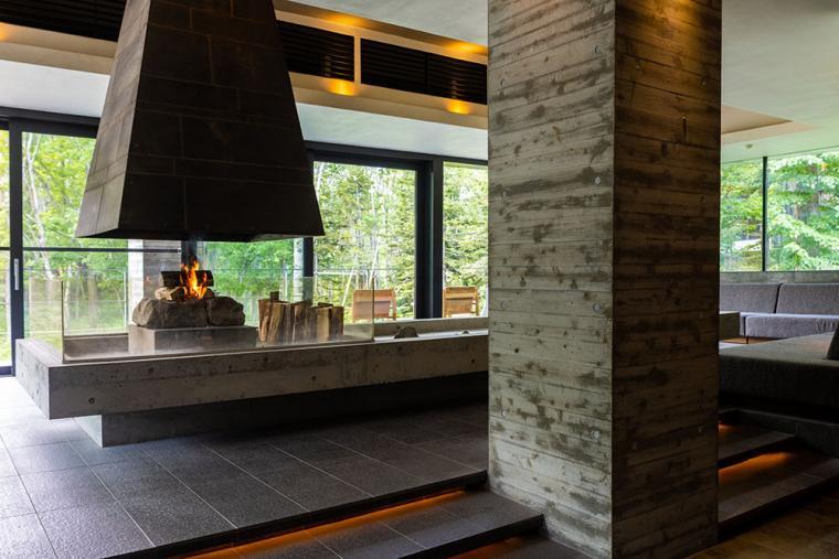 체크인은 리셉션 옆에 있는 로비입니다. 우선 눈을 바라보는 것이 창 너머로 펼쳐지는 숲의 풍경. 벽난로에는 자작나무와 에조 소나무 등의 간벌재를 활용한 장작이 모여 흔들리는 불꽃의 따스함과 향기로운 나무의 아로마로 손님을 대접하고 있습니다. 정적에 싸인 공간에 장작의 폭발하는 소리가 때때로 울리고, 매일 번거로운 것도 이것도 어딘가에 사라져, 시간이 느긋하게 흐르기 시작하는 것을 깨닫습니다.
