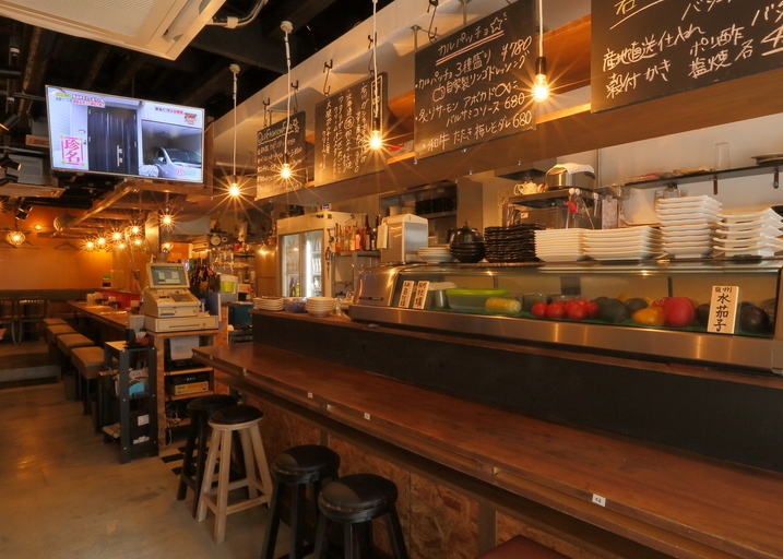 이 이자카야는 요쇼쿠(서양식 일본 요리)를 제공하며 난바역에서 도보로 3분 거리에 있습니다. 다양한 메뉴 중에서 선택할 수 있지만 수조에서 살아있는 해산물로 만든 요리를 맛보고 싶을 것입니다. 왕새우 한 마리를 통째로 사용한 [신선한 허브 구이](2,180엔), [헤엄치는 게를 통째로 넣은 토마토 파스타](1,050엔) 등 풍부한 맛을 즐길 수 있습니다. [오늘의 오마카세 카르파치오 3종류](980엔)도 맛뿐만 아니라 보기에도 좋습니다.
