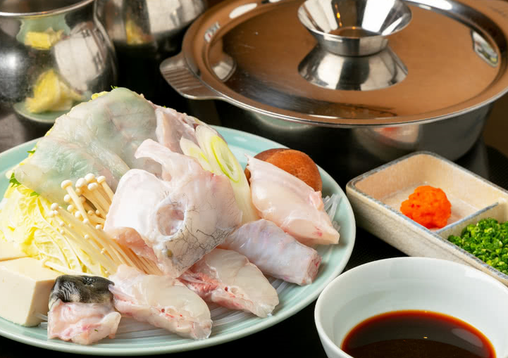 이 세련되고 현대적인 일본식 이자카야는 복어, 특히 "복어의 왕"으로 알려진 토라-복어(호랑이 복어)를 전문으로 합니다. 사카이히가시역에서 도보 4분 거리입니다. 이곳에서 사용되는 복어는 최적의 신선도를 위해 어항에서 살아 있습니다. 뎃사(복어 회), 텟치리(복어 조림), 튀김 요리 등 다양한 요리를 즐기실 수 있습니다. 추천 메뉴는 시치린(숯불 화로)에 직접 구워 즐길 수 있는 [복어 구이](2,300엔)입니다. 또한 예산에 따라 다양한 코스 요리를 제공합니다.
