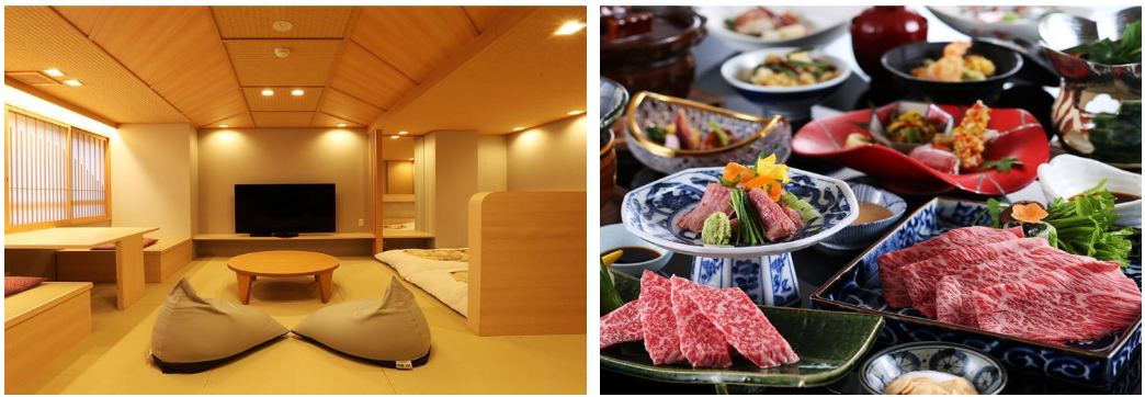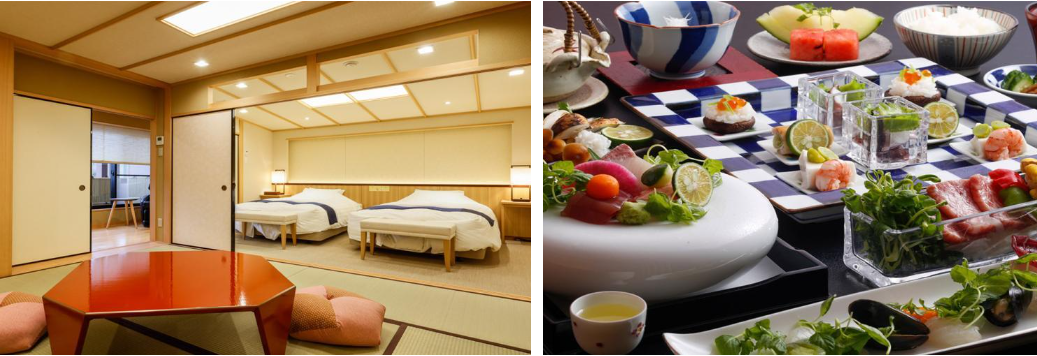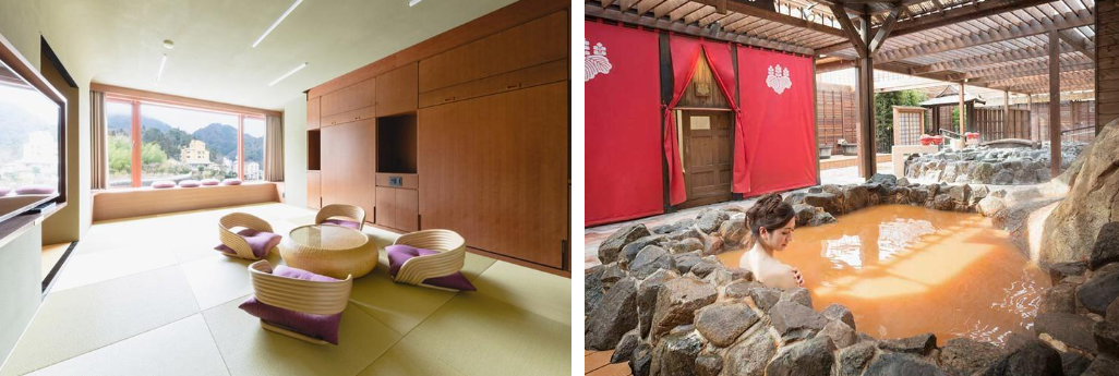 객실 타입은 노천탕(온천이 아님)의 모던한 일본식 객실과 반노천탕이 있는 스위트 일본식 방 등을 라인업.