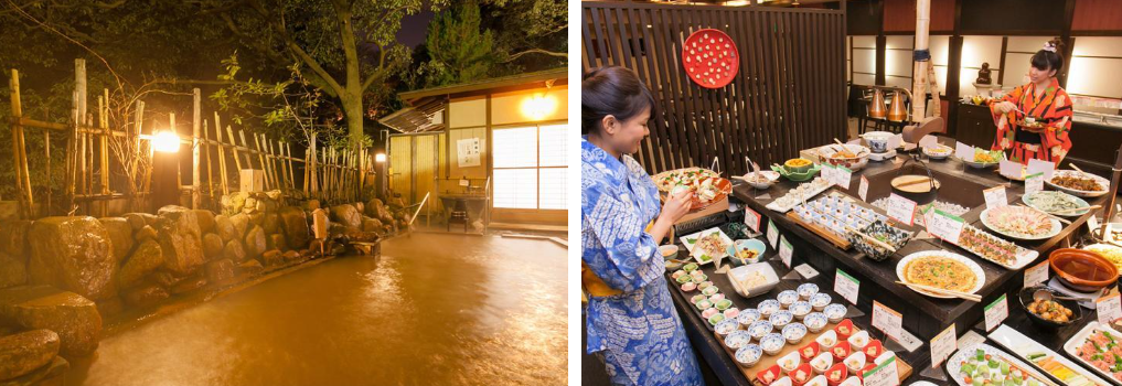 개인실 암반욕이 있는 커플용 플랜 등, 다양한 숙박 플랜이 준비되어 있습니다.