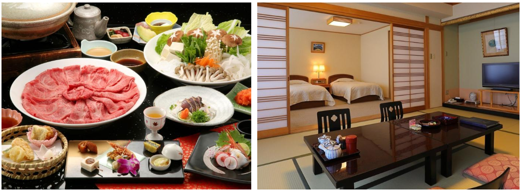 현지·효고의 제철 식재료 등을 사용한 식사는 외형도 아름답고, 물품 풍부하고 먹을 수 없을 정도로, 높은 평가를 얻고 있습니다. 이용자로부터는, “저녁 식사의 스키야키가 매우 맛있고, 또 접객이나 서비스가 훌륭하고, 즐겁게 마음껏 한때를 보낼 수 있었습니다.방도 충분한 넓이로 온천도 기분 좋았습니다”라고의 소리가 오르고 있습니다 .